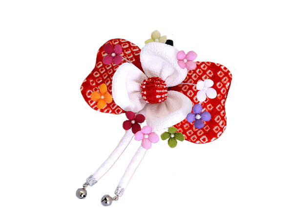 七五三 子供髪飾り 7歳 赤 白 正絹 絞り R553415 ★