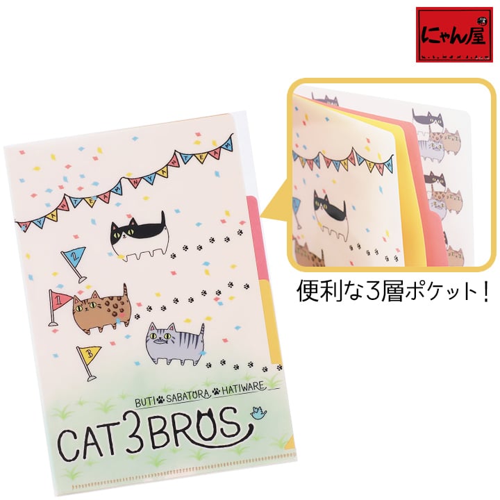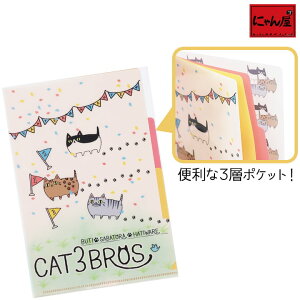 【メール便対応】にゃん屋 猫3兄弟 A5クリアファイル 3ポケット かけっこ |ねこ 猫 ネコ cat ミケ くろ A5 ポケット ステーショナリー 文具 文房具 かわいい プレゼント ファイル 収納 子供 女の子 女性 彼女 雑貨 誕生日 セラミック藍 ホワイトデー