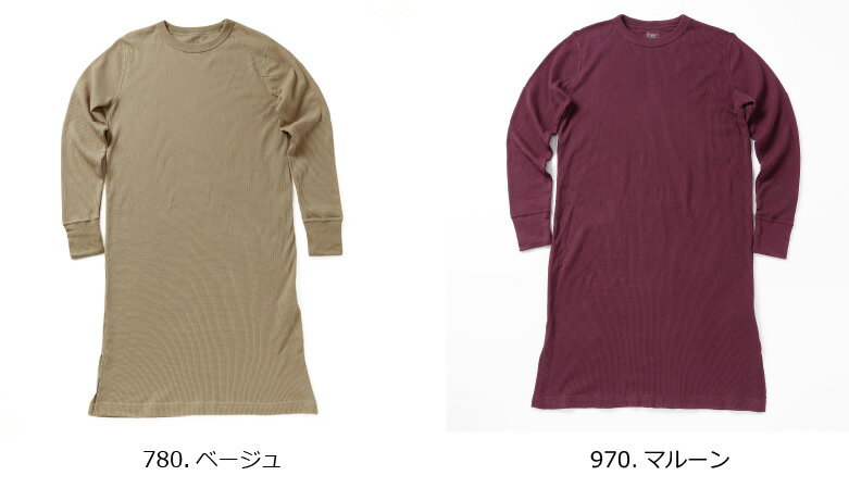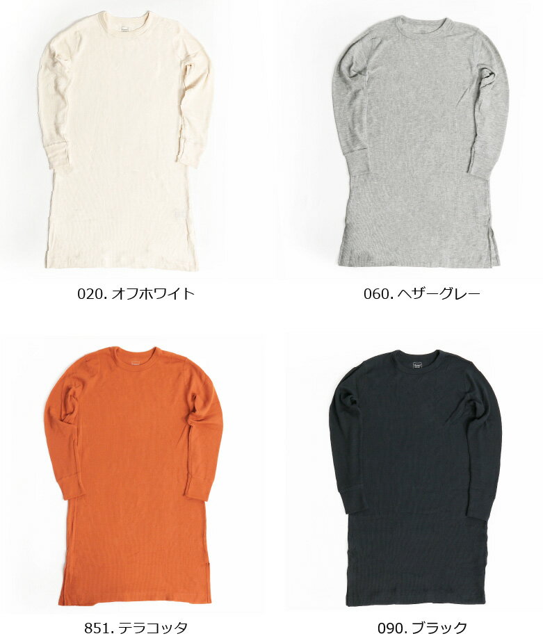 ★期間限定!ポイント15倍対象商品★Hanes(ヘインズ) レディース サーマル ワンピース クルーネック ウィメンズ チュニック 膝丈 長袖 ルームウェア 無地 (hw4-q503)【コンビニ受取対応商品】【ラッピング無料対象】